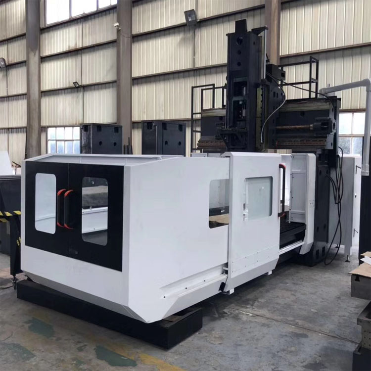 該型號龍門加工中心結構設計為單立柱固定可移動工作臺。整機由床身、立柱、橫梁、橫向滑臺、工作臺、主軸、絲桿、潤滑系統、冷卻系統、數控操作面板以及電控系統等部件組成。適合銑削大型高精度零部件。