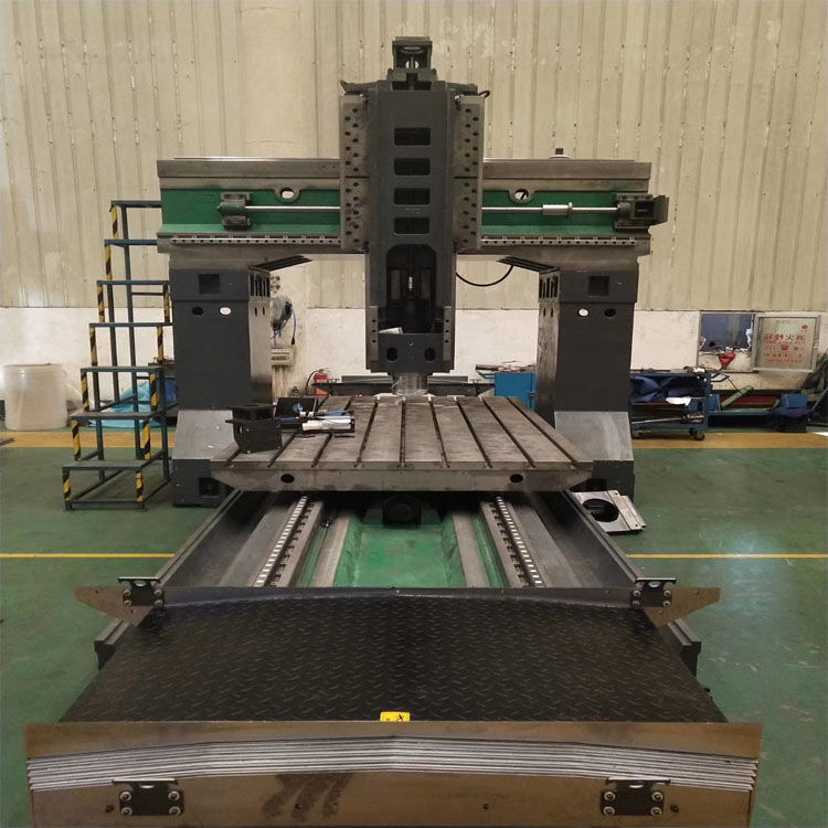 該型號數(shù)控龍門加工中心結(jié)構(gòu)為單立柱固定可移動工作臺。整機由床身、立柱、橫梁、橫向滑臺、工作臺、主軸、絲桿、潤滑系統(tǒng)、冷卻系統(tǒng)、數(shù)控操作面板以及電控系統(tǒng)等部件組成。適合銑削大型高精度零部件。